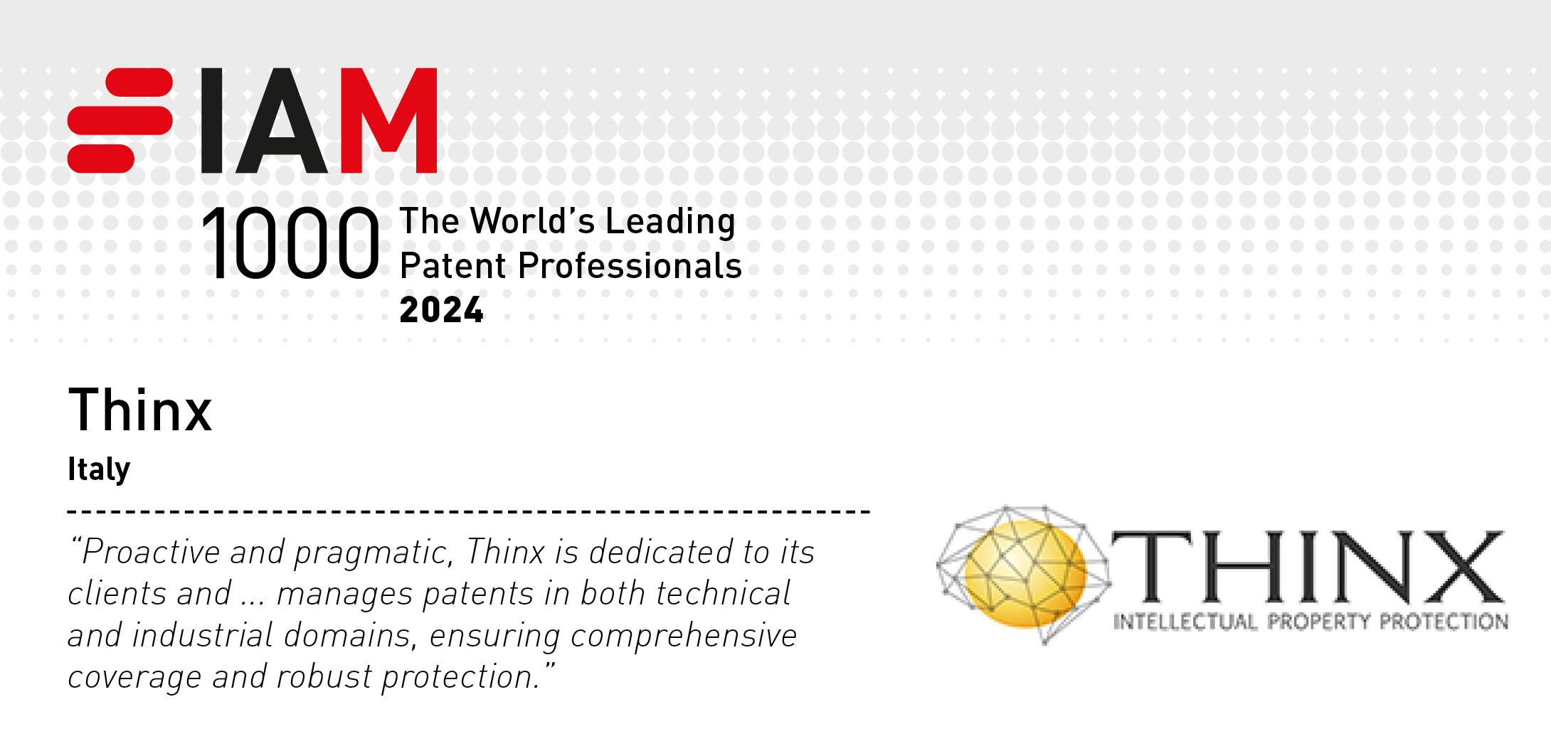 THINX sa come proteggere efficacemente la tua proprietà intellettuale. Professionisti esperti e sempre aggiornati assicurano alla tua azienda il valore aggiunto generato da idee originali e investimenti in comunicazione, tutelandone al meglio il patrimonio.